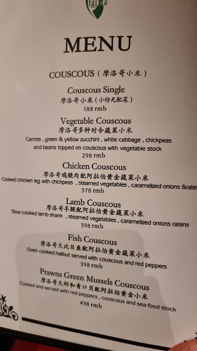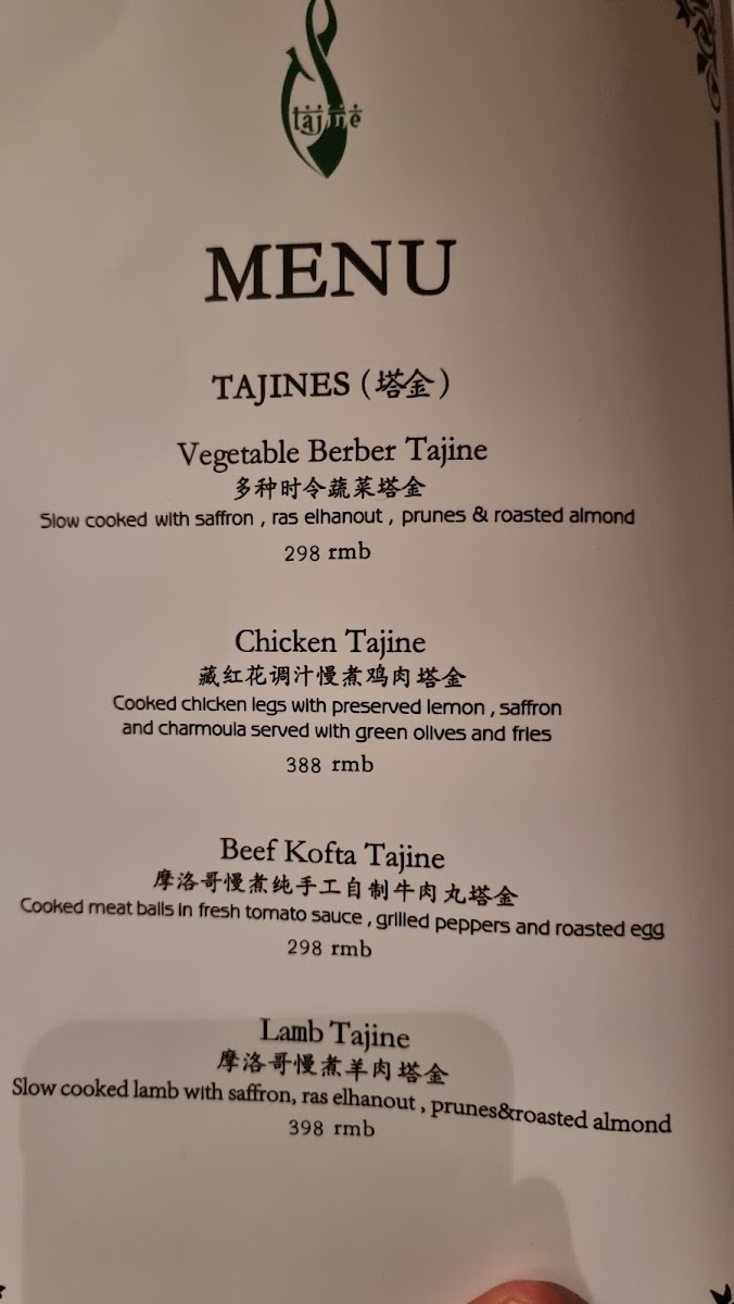 Tajine Morocco Restaurant & Lounge Menu